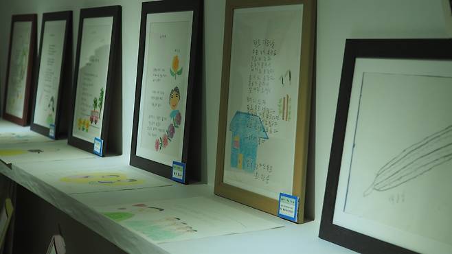 | ▲ 행복한노인학교 어르신들의 시화 작품 봉곡분교에 전시 중인 행복한노인학교 어르신들의 시화 작품 |