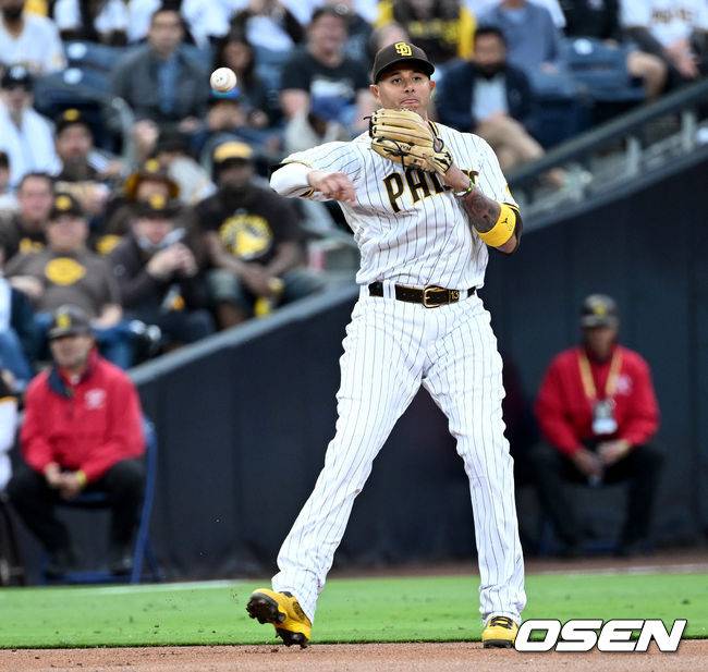3회초 1사 주자없는 상황 피츠버그 카스트로의 땅볼 때 샌디에이고 3루수 마차도가 타구를 잡아 1루로 송구하고 있다. 2022.05.28 /dreamer@osen.co.kr