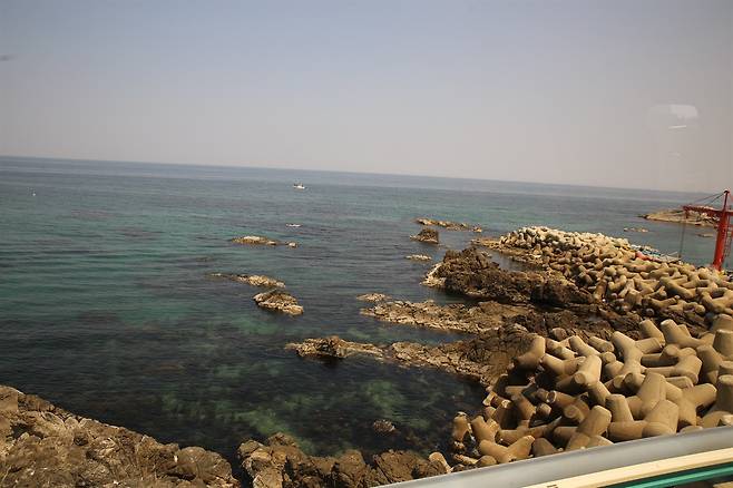 아래로 펼쳐지는 울진의 바다는 참 깨끗했다. 마치 제주도의 바다를 보는 듯한 느낌이었다.