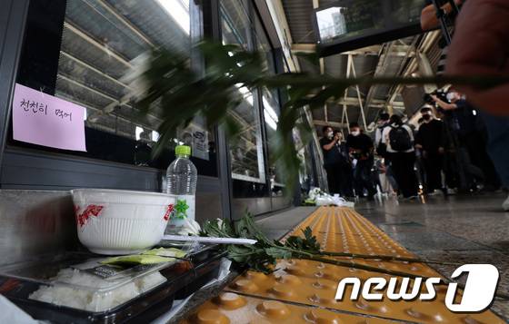 '구의역 참사 6주기' 승강장 앞엔 컵라면과 도시락
