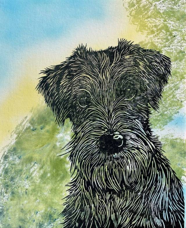 강아지의 털 한 가닥 한 가닥, 꽃잎의 잎맥 한 올 한 올이 생생하게 살아있다. 선의 반복이 표정과 분위기를 만든다. 새들이 노니는 산세와 계곡의 물길도 힘차게 뻗었다. 붓으로 그린 게 아니라, 하나하나 손으로 새기고 파서 판화로 찍은 작품들이다.