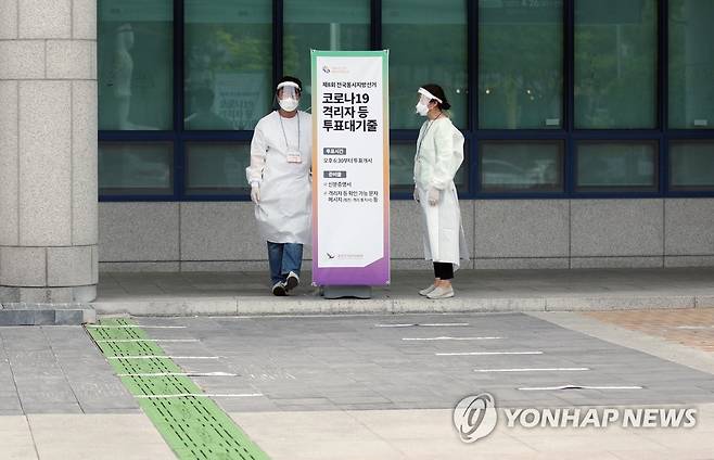 (광주=연합뉴스) 천정인 기자 = 28일 오후 광주 서구 상무1동 사전투표소에 마련된 코로나19 확진자 사전투표 대기 장소가 한산하다. 2022.5.28