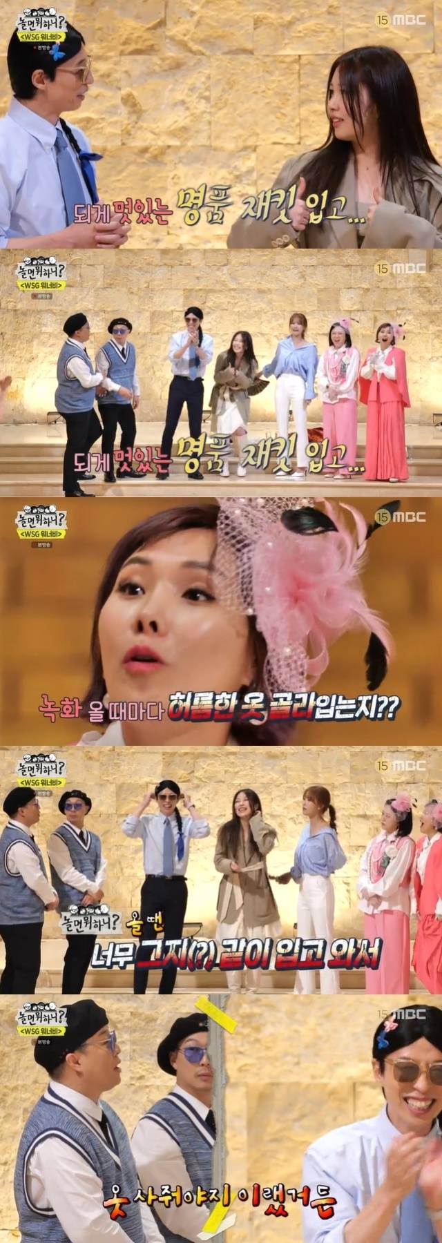 그러자 신봉선은 "녹화 올 때마다 허름한 옷을 골라입냐"고 유팔봉에게 물었다. 유팔봉이 "어차피 제 게 아니고 유재석 것"이라고 선을 긋는 가운데 정준하는 "'놀뭐' 녹화 땐 너무 거지같이 입고 와서 옷 좀 사줘야지 했다"고 농담했다.