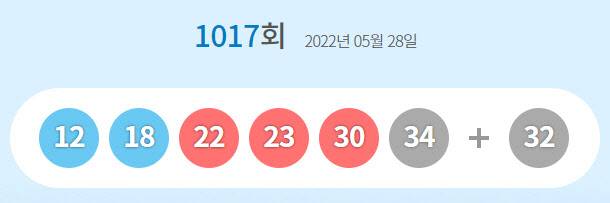 28일 1017회 동행복권 로또 추첨 결과 '12·18·22·23·30·34'가 1등 당첨번호로 뽑혔다. 2등 보너스 번호는 '32'다.