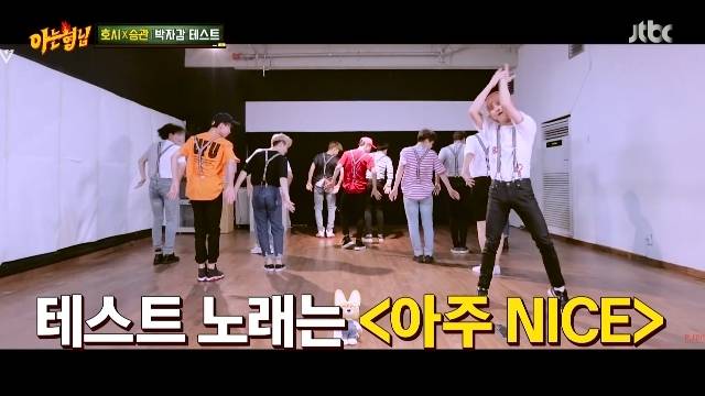 이날 호시는 세븐틴의 '아주 NICE'로 박자감 테스트를 진행했다. 도전을 앞두고 형님들은 도전곡이 공개되자 "이거 너네 노래 아니고 '놀라운 토요일'(이하 '놀토') 노래잖나"라고 놀렸는데.