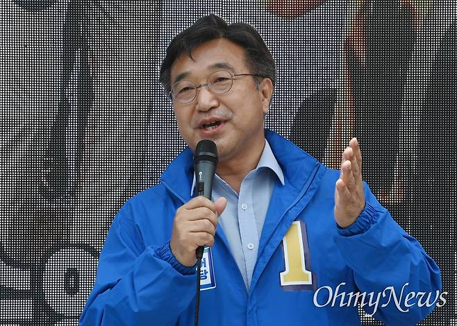 | ▲ 더불어민주당 윤호중 상임선거대책위원장이 26일 서울 서대문구 현대백화점 신촌점 유플렉스 앞에서 서울시장 후보 지원유세를 펼치고 있다. |