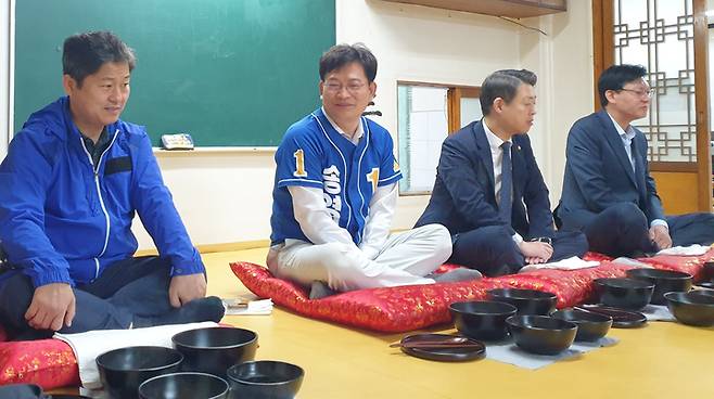 [서울=뉴시스] 조수정 기자 = 송영길 더불어민주당 서울시장 후보가 28일 오전 서울 서대문 한국불교태고종 백련사를 방문, 아침 공양을 하고 있다. (사진=송영길 후보 캠프 제공) 2022.05.28. photo@newsis.com