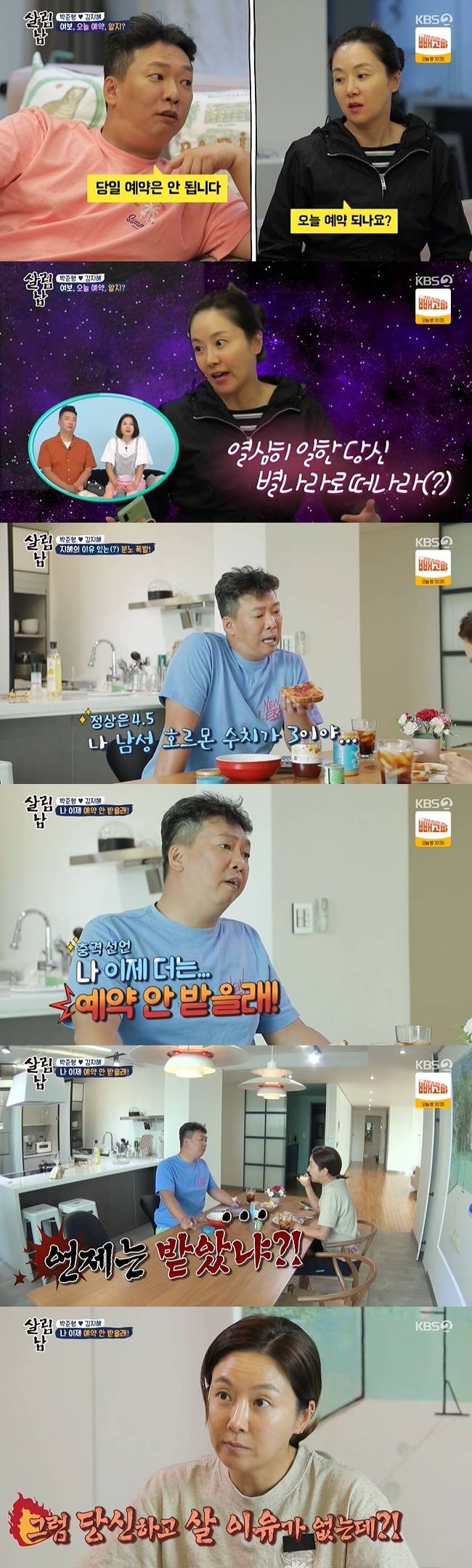 박준형은 “몸이 예전 같지 않아. 나 이제 더 이상 예약 안 받을래. 이제 나한테 그런 걸로 스트레스 안 줬으면 좋겠다”라고 설득했지만, 김지혜는 “그러면 당신과 살 이유가 없다”라고 단호하게 말해 박준형을 당황시켰다.