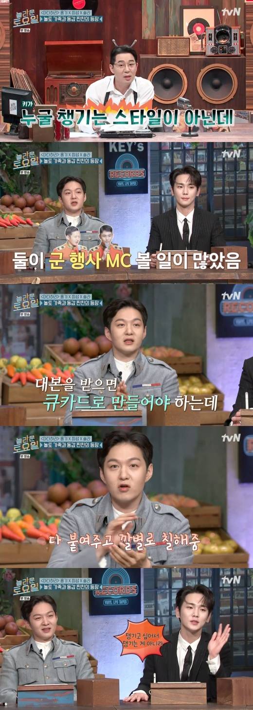 28일 밤 방송된 케이블채널 tvN 예능 프로그램 ‘놀라운 토요일’(이하 ‘놀토’)에는 뮤지컬 ‘마타하리’의 주역인 FT아일랜드 이홍기, 비투비 창섭, 마마무 솔라가 출연했다.