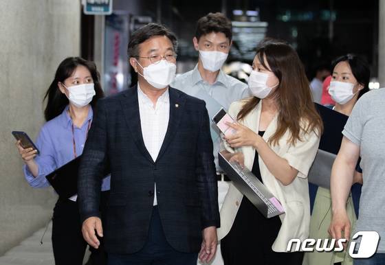 (서울=뉴스1) 이재명 기자 = 윤호중 더불어민주당 공동비상대책위원장이 28일 오후 서울 여의도 국회에서 열린 비상대책위원회 간담회를 마친 후 취재진 질문에 답변하고 있다. 2022.5.28/뉴스1
