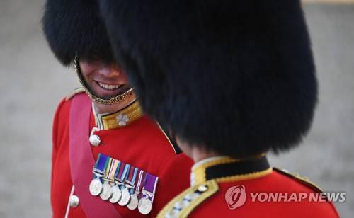 epa09981936 Members of the Household Division before they take part in The Colonel's Review at Horseguards Parade Ground in London, Britain, 28 May 2022. The Colonel's Review is the final evaluation of the parade before it goes before Britain's Queen Elizabeth during the Trooping of the Colour on the 2nd June 2022 as part of the Platinum Jubilee celebrations. EPA/NEIL HALL