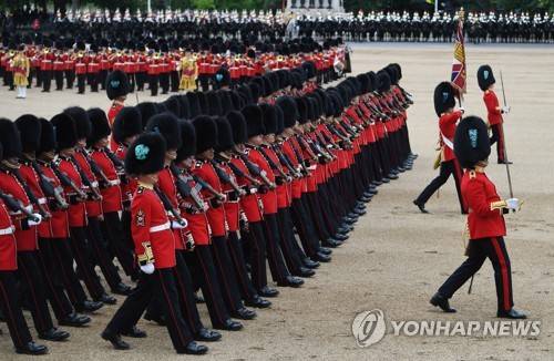 epa09981941 The Household Division take part in The Colonel's Review at Horseguards Parade Ground in London, Britain, 28 May 2022. The Colonel's Review is the final evaluation of the parade before it goes before Britain's Queen Elizabeth during the Trooping of the Colour on the 2nd June 2022 as part of the Platinum Jubilee celebrations. EPA/NEIL HALL
