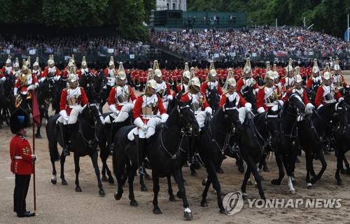 epa09981939 The Household Division take part in The Colonel's Review at Horseguards Parade Ground in London, Britain, 28 May 2022. The Colonel's Review is the final evaluation of the parade before it goes before Britain's Queen Elizabeth during the Trooping of the Colour on the 2nd June 2022 as part of the Platinum Jubilee celebrations. EPA/NEIL HALL