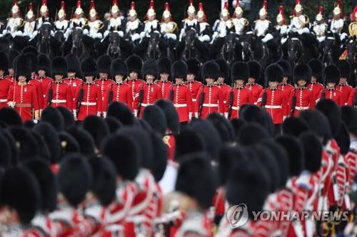 epa09981949 The Household Division, in traditional bearskin hats, take part in The Colonel's Review at Horseguards Parade Ground in London, Britain, 28 May 2022. The Colonel's Review is the final evaluation of the parade before it goes before Britain's Queen Elizabeth during the Trooping of the Colour on the 2nd June 2022 as part of the Platinum Jubilee celebrations. EPA/NEIL HALL