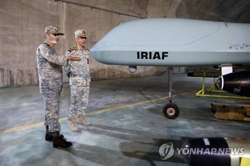 epa09981980 A handout photo made available by the Iranian Army on 28 May 2022, shows Commander-in-Chief of the Iranian Army Major General Abdolrahim Mousavi (L) and Armed Forces Chief of Staff Major General Mohammad Bagheri (R) visiting an underground drone base, in an unknown location in Iran, 19 May 2022 (issued 28 May 2022). EPA/IRANIAN ARMY OFFICE / HANDOUT HANDOUT EDITORIAL USE ONLY/NO SALES