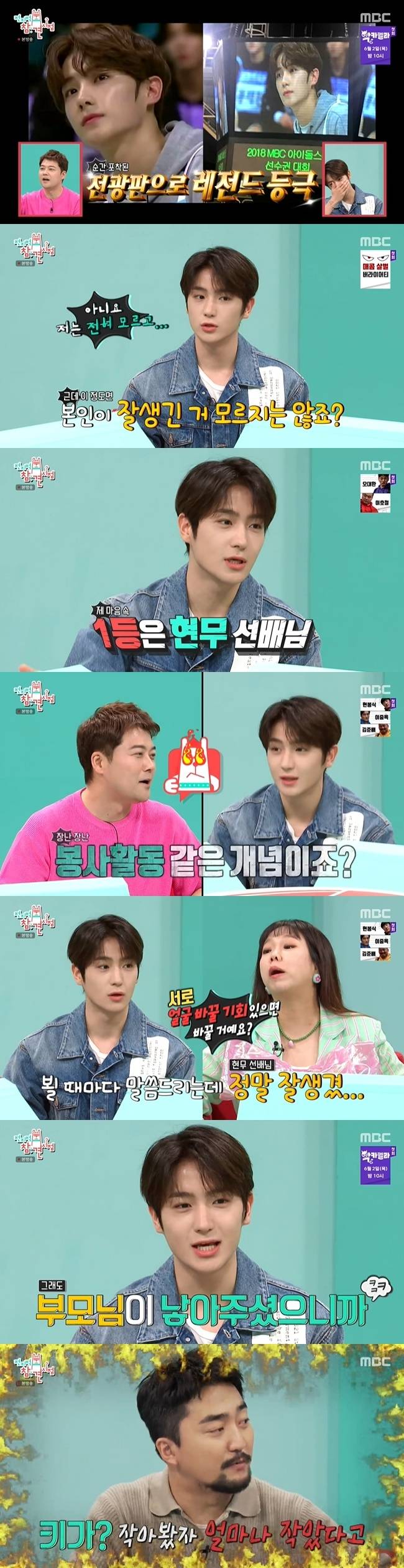유병재가 “이 정도면 본인이 잘생긴 것 모르지 않죠?”라고 �P자, 현재는 “저는 전혀 모른다”라고 답해 출연자들의 반발을 불렀다. 홍현희가 “여기서 외모 순위 몇 등이냐”라고 묻자, 현재는 “1등은 현무 선배님이다”라고 말했다. 이에 출연자들은 “진짜 못 됐다”, “정말 나쁘다”, “봉사활동 같은 개념이냐”라고 따졌다.