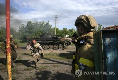 epa09982106 Ukrainian servicemen take their positions near the small city of Bakhmut, Donetsk region, Ukraine, 28 May 2022. On 24 February, Russian troops invaded Ukrainian territory starting a conflict that has provoked destruction and a humanitarian crisis. EPA/STR