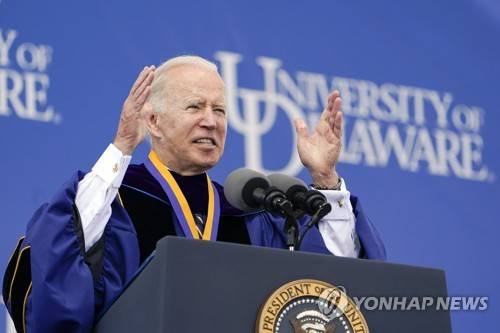President Joe Biden delivers his keynote address to the University of Delaware Class of 2022 during its commencement ceremony in Newark, Del., Saturday, May 28, 2022. (AP Photo/Manuel Balce Ceneta)