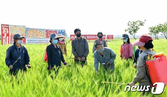 (평양 노동신문=뉴스1) = 북한 황해북도 봉산군 읍협동농장 근로자들이 작업 중이다. 조선노동당 기관지 노동신문은 29일 "농업부문 일꾼들과 근로자들이 모내기를 다그치는 것과 함께 중시해야 할 사업은 밀농사"라고 강조했다.