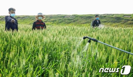 (평양 노동신문=뉴스1) = 북한 평안남도 숙천군 읍농장 근로자들이 작업 중이다. 조선노동당 기관지 노동신문은 29일 "농업부문 일꾼들과 근로자들이 모내기를 다그치는 것과 함께 중시해야 할 사업은 밀농사"라고 강조했다.