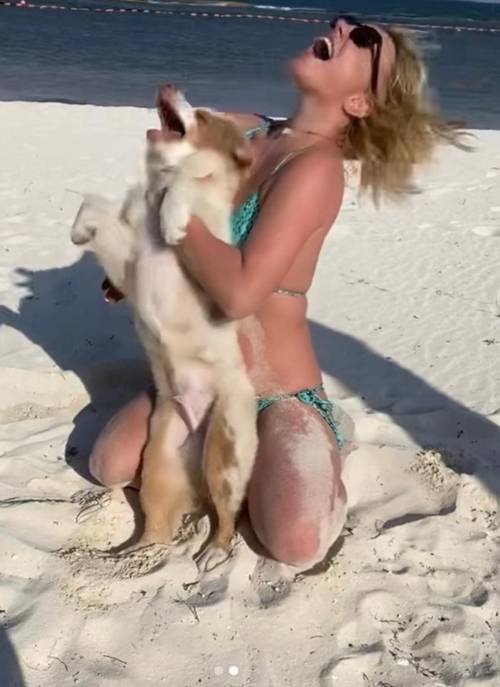 그는 28일(현지시간) “똑같은 사진이 아니다”라면서 중요 부위만 가린 전라셀카 사진을 게재했다. 이어 해변가에서 비키니를 입고 반려견과 즐거운 시간을 보내는 사진도 게재했다.
