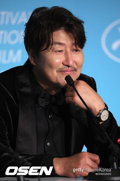 송강호는 “제가 박찬욱 감독님과 오랫동안 작업했던 배우라서 남다른 감정”이라고 말문을 열었다. “물론 저는 고레에다 히로카즈 감독님의 ‘브로커’로 이 상을 받았지만 같은 식구들이 받아서 뿌듯하다”고 했다. 앞서 송강호는 박찬욱 감독의 영화 ‘박쥐’(2009)에 남자 주인공으로 출연했던 바. 이 영화는 그해 칸영화제에서 심사위원상을 차지했다.