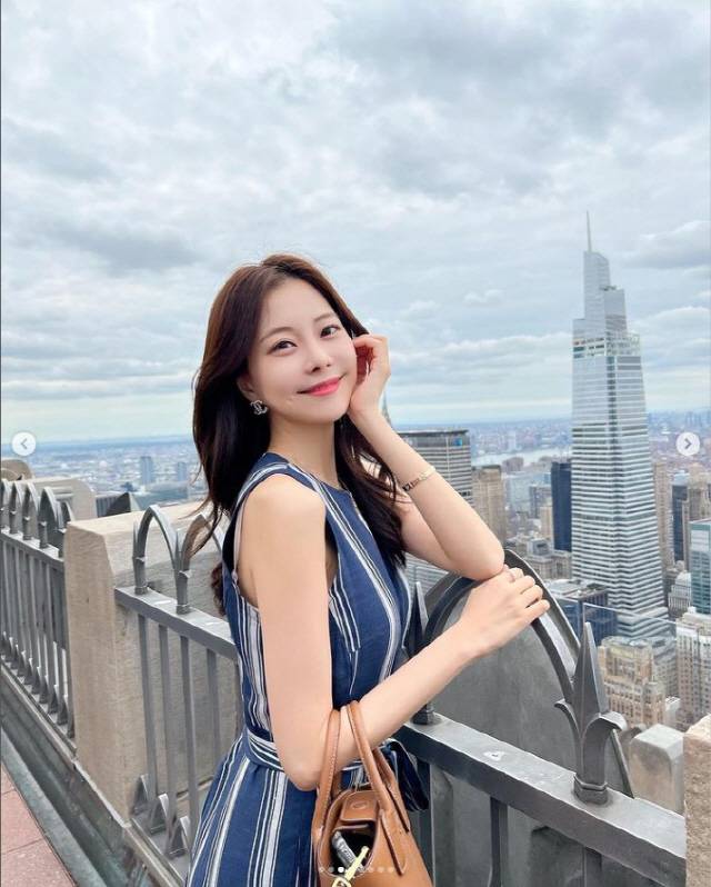 공개된 사진 속 아옳이는 뉴욕의 한 건물의 전망대에 오른 모습. 이때 완벽한 미모가 네티즌들의 시선을 모았다.