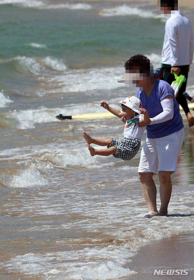 [부산=뉴시스] 하경민 기자 = 더운 날씨를 보인 29일 부산 해운대구 송정해수욕장을 찾은 시민과 관광객들이 물놀이를 즐기고 있다. 2022.05.29. yulnetphoto@newsis.com