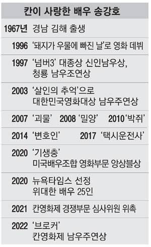 - `괴물` 이후 7차례 칸의 문 두드린 끝에…송강호 남우주연상 거머쥐어