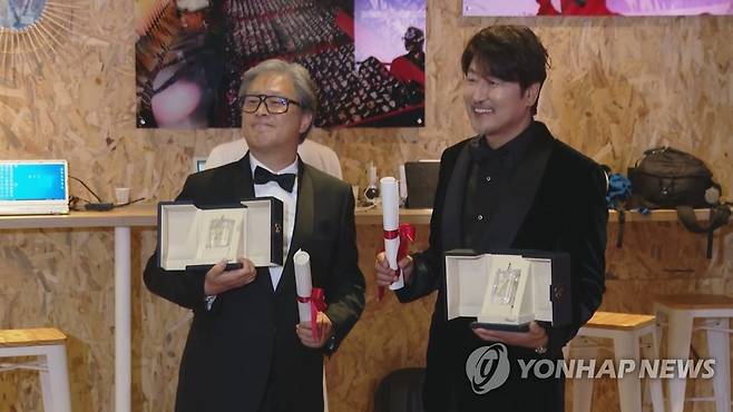 기념 촬영하는 박찬욱 감독과 배우 송강호