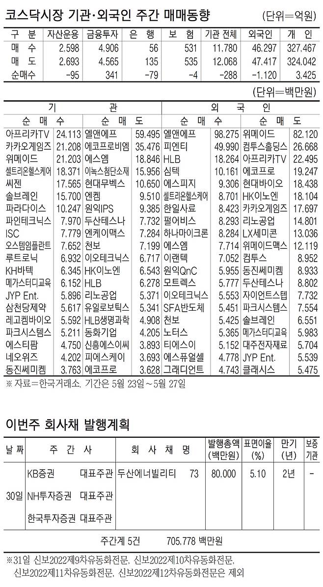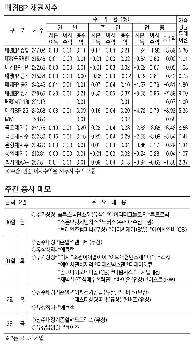 [표] 주간 주요 증시 지표
