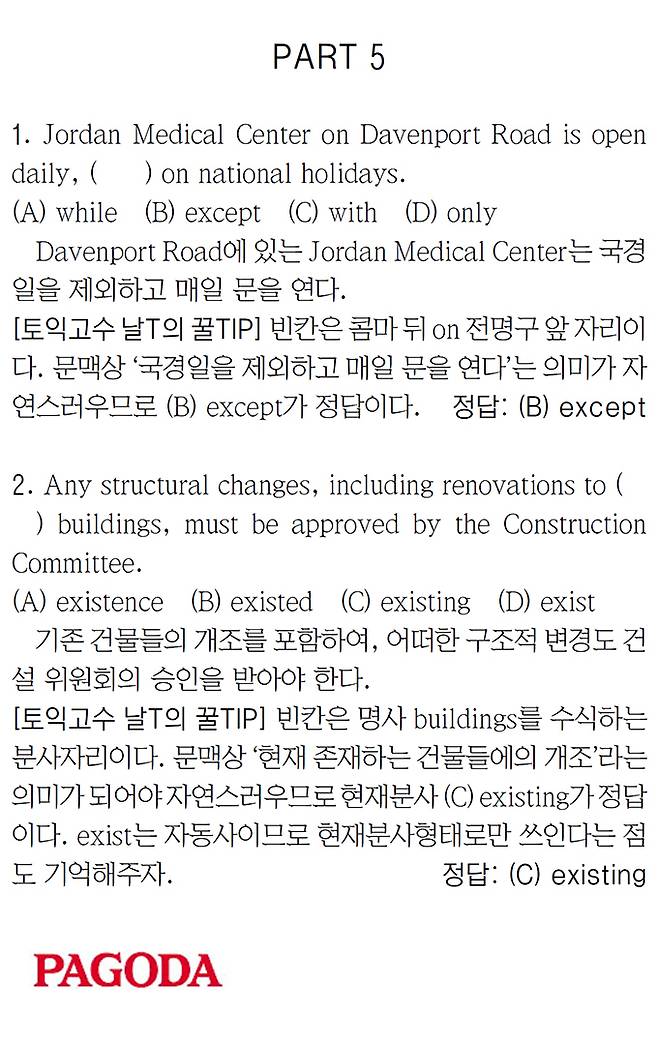 [파고다 강남 1타토익 RC김나래] PART 5