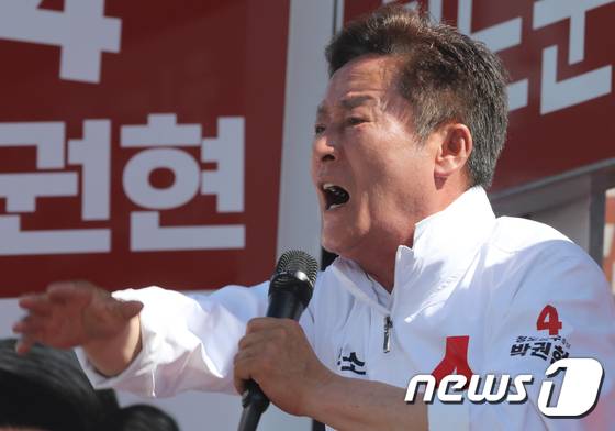 (청도=뉴스1) 정우용 기자 = 29일 경북 청도 삼거리에서 열린 무소속 박권현 청도군수 후보 유세에서 박 후보가 간절한 표정으로 지지를 호소하고 있다. 박 후보는 "진심이 공약이다. 청도를 위한 저의 진심을 알아달라"고 읍소했다. 2022.5.29/뉴스1