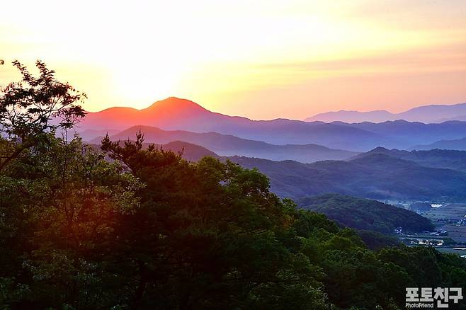 고령 산등성이에서 조용하게 떠오르는 해를 오랜만에 바라봅니다.