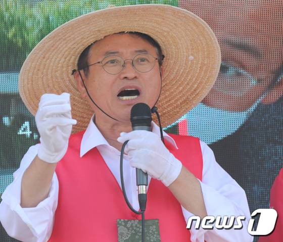 (청도=뉴스1) 정우용 기자 = 29일 경북 청도 삼거리에서 열린 국민의힘 김하수 청도군수 후보 유세에서 이철우 경북지사 후보가 국민의힘 시장, 도·군의원 후보들의 지지를 호소하고 있다. 2022.5.29/뉴스1