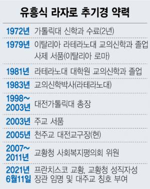 1951년 충남 논산에서 태어난 유 신임 추기경은 1979년 이탈리아 로마 라테라노대 교의신학과를 졸업하고 현지에서 사제 서품을 받았다. 이후 대전 대흥동 본당 수석보좌신부, 솔뫼성지 피정의집 관장, 대전가톨릭교육회관 관장, 대전교구 사목국장, 대전가톨릭대 교수·총장 등을 거쳐 2003년 주교로 서품됐다.