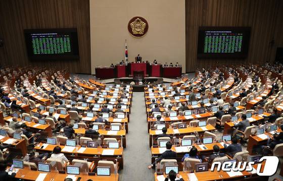 (서울=뉴스1) 허경 기자 = 29일 서울 여의도 국회에서 열린 397회(임시회) 제4차 본회의에서 '공무원의 노동조합 설립 및 운영 등에 관한 법률 일부개정법률안'이 재적 292인 중 재석 188인, 찬성 176인, 반대 4인, 기권 8인으로 통과 되고 있다. (공동취재) 2022.5.29/뉴스1