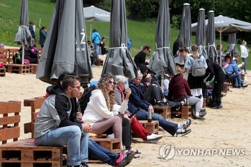 epa09984152 Visitors relax at the 'beach' on the 1,126 meters high Gubalowka mountain in Zakopane in the Polish Tatras Mountains, Poland, 29 May 2022. The 'beach' with benches and parasols is located at a height of 1,120 meters above sea level and is said to be the highest situated sandy beach in Poland, although it is nearly impossible to see any sea from the site. EPA/Grzegorz Momot POLAND OUT