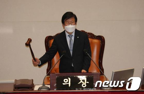 (서울=뉴스1) 허경 기자 = 29일 서울 여의도 국회에서 열린 397회(임시회) 제4차 본회의에서 '2022년도 제2회 추가경정예산안'이 재적 292인 중 재석 252인, 찬성 246인, 반대 1인, 기권 5인으로 통과 되고 있다. (공동취재) 2022.5.29/뉴스1