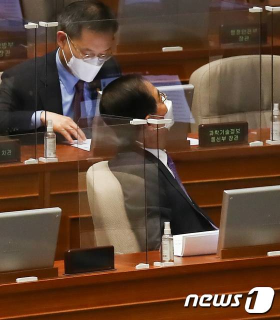 (서울=뉴스1) 허경 기자 = 29일 국회에서 열린 제 397회 4차 본회의에서 한덕수 국무총리가 법안통과를 지켜보고 있다. (공동취재) 2022.5.29/뉴스1