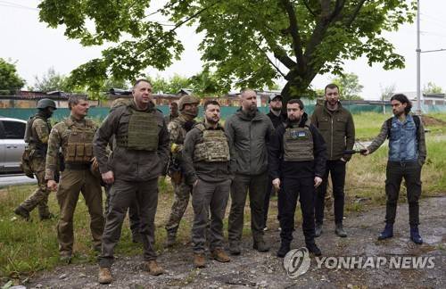 epa09984251 A handout photo made available by the Ukrainian Presidential Press Service shows Ukrainian President Volodymyr Zelensky (C) meeting with Ukrainian servicemen during his visit to the Kharkiv region, Ukraine, 29 May 2022, amid the Russian invasion. According to the Ukrainian presidential office, Zelensky visited the frontline positions in the east of the country and presented state awards to the military during a working trip to the Kharkiv region. On 24 February, Russian troops invaded Ukrainian territory starting a conflict that has provoked destruction and a humanitarian crisis. EPA/UKRAINIAN PRESIDENTIAL PRESS SERVICE HANDOUT -- MANDATORY CREDIT: UKRAINIAN PRESIDENTIAL PRESS SERVICE -- HANDOUT EDITORIAL USE ONLY/NO SALES