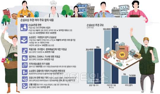 구체적인 합의안에서 여야는 손실보전금 지급 대상 매출액 기준을 당초 정부 안인 30억원 이하에서 50억원 이하로 완화, 전국 371만여 사업자로 확대하고 이들에게 손실보전금을 600만원에서 최대 1000만원까지 지급하기로 했다.