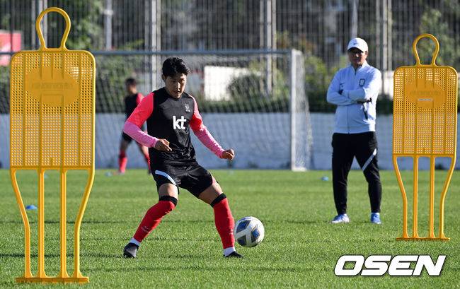 U-23 대표팀 이강인이 황선홍 감독이 지켜보는 가운데 훈련을 하고 있다. 2022.05.29 /cej@osen.co.kr