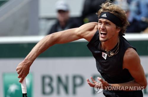 epa09984338 Alexander Zverev of Germany plays Bernabe Zapata Miralles of Spain in their men?s fourth round match during the French Open tennis tournament at Roland ?Garros in Paris, France, 29 May 2022. EPA/CHRISTOPHE PETIT TESSON