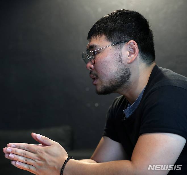[서울=뉴시스] 백동현 기자 = 배우 한상조가 지난 24일 오후 서울 마포구 한 카페에서 뉴시스와 인터뷰하고 있다. 2022.05.29. livertrent@newis.com