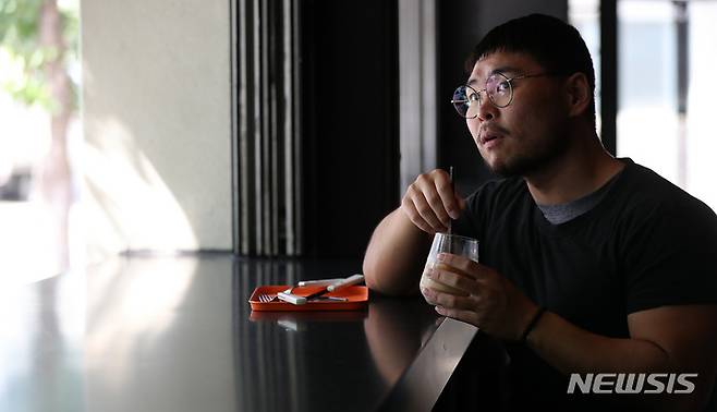 [서울=뉴시스] 백동현 기자 = 배우 한상조가 지난 24일 오후 서울 마포구 한 카페에서 뉴시스와 인터뷰에 앞서 사진촬영하고 있다. 2022.05.29. livertrent@newis.com