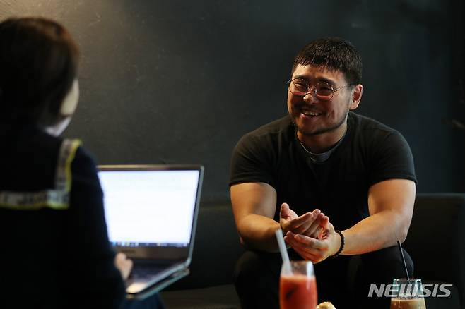[서울=뉴시스] 백동현 기자 = 배우 한상조가 지난 24일 오후 서울 마포구 한 카페에서 뉴시스와 인터뷰하고 있다. 2022.05.29. livertrent@newis.com