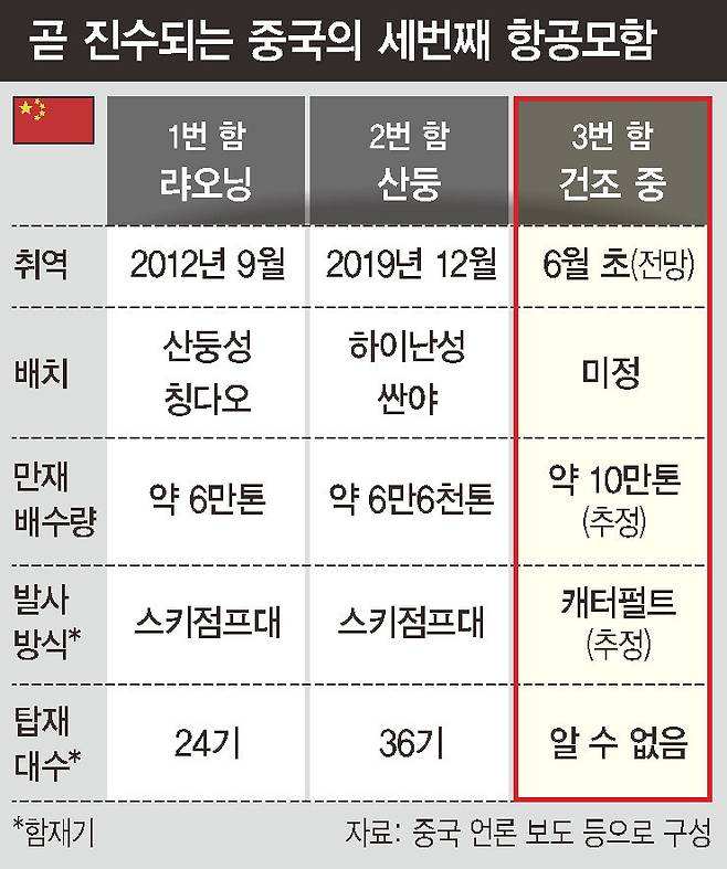 중국이 캐터펄트(사출기)를 장착한 세번째 항공모함을 내달 3일 진수할 가능성이 있다는 전망이 나왔다. 대만 해협을 둘러싼 미-중 간 전략 경쟁에 더 치열해질 것으로 보인다.