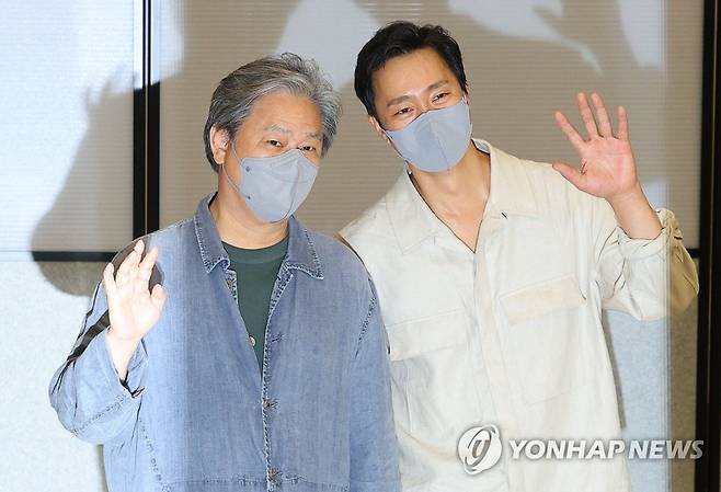 취재진 향해 인사하는 박찬욱-박해일