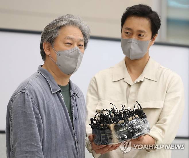 (서울=연합뉴스) 차지욱 수습기자 = 제75회 칸국제영화제에서 감독상을 받은 박찬욱 감독이 30일 오후 인천국제공항 제2여객터미널을 통해 입국한 후 인터뷰를 하고 있다. 2022.5.30